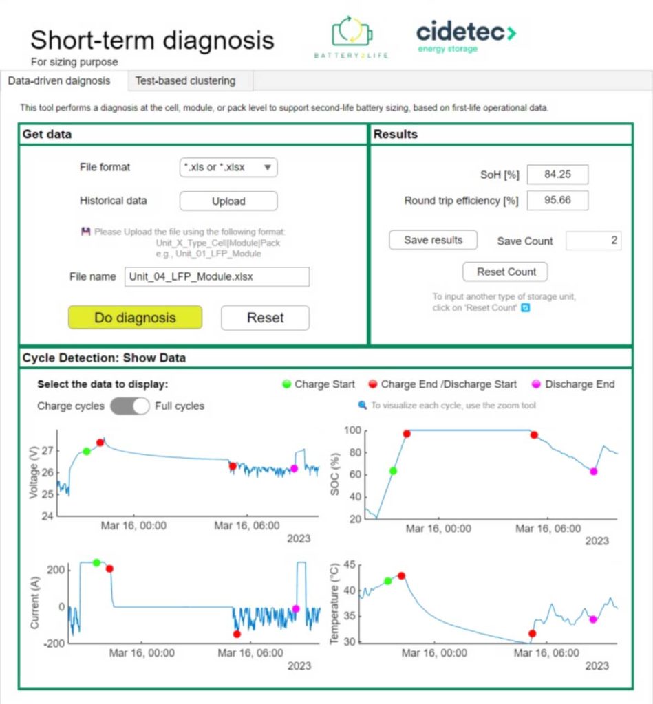PROTEO 2nd life covers especific technological needs to design and manufacture 2nd life battery Systems through an advanced battery sorting tool compliant to UL1974, and a sizing tool that combines sorting data, lifespan predictions and techno-economical assessments.
